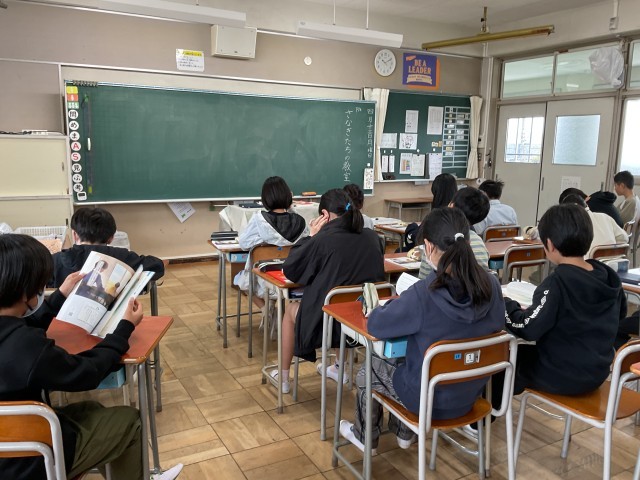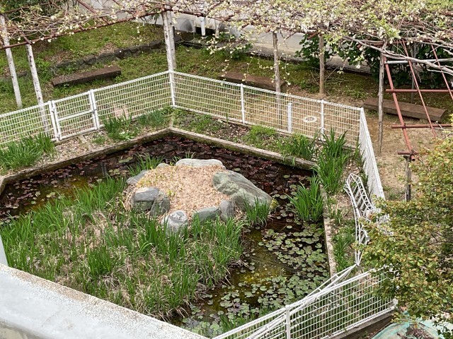 こどもたちが音読する中、中庭のカエルたちは、ゲコゲコ鳴いていました。