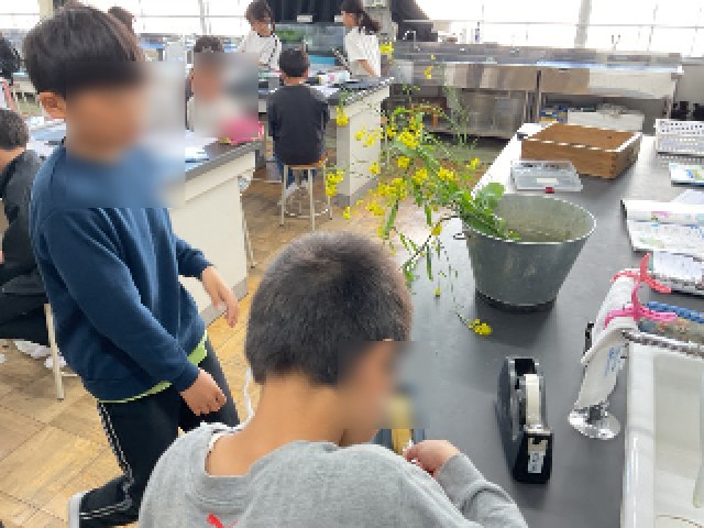 朝採れの菜の花は、理科の先生が準備していました。朝から黄色の花束を持っているようでした。