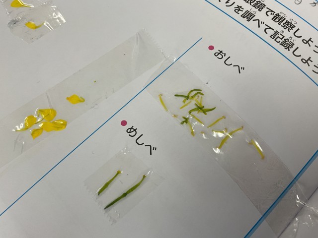 おしべ や めしべなどに 分けて虫メガネで調べていました。