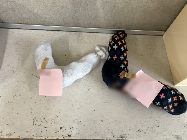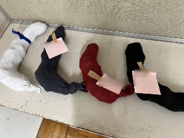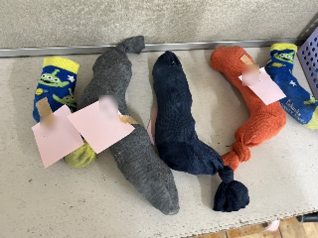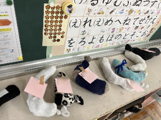 と、靴下でひらがなの「し」を作ったものを教えてくれました。
