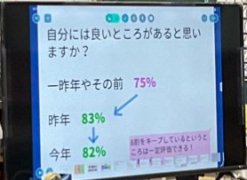 児童アンケートでも 「自分によいところがある」「夢や目標がある」