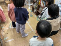 レーザー光線に見立てた蜘蛛の巣のように張り巡らされた紐の間をすり抜けて進むと、「だるまさんが転んだ」の鬼の背中のクイズを解いていきます。途中、ピン球を使った難所があったりと、バリエーション豊富で楽しめる内容となっていました。私(校長)は参加しませんでした。というのも、どう見てもレーザー光線区域を突破できると思われなかった(隙間が細すぎ!!)ので・・・。ウ〜ン、残念!。