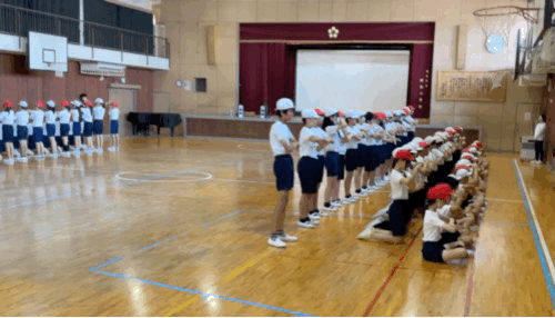 体育館でマット運動。鉄棒のときと同様にタブレットを使い、自身の振り返りをしていました。慣れたものです。