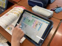 風やゴムのはたらきについて学んでいます。その一環として、組み立てた車で、ゴムの力やプロペラの動きなどを何度も確かめていました。実際にやってみることは何よりの学びですね。