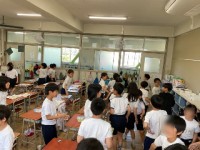 今日は、防災の授業を各クラスで行い、給食、そして、大阪880万人避難訓練を行いました。