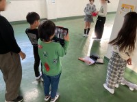 2年生が1年生をリードするようにお手本をみせながら進めていました。