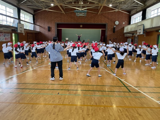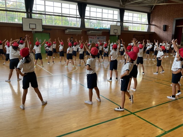 1年生は音楽に合わせて元気いっぱいに踊り、