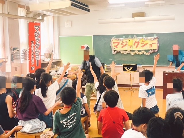 ユーモアたっぷりの3名のマジシャンによる、マジックショーを鑑賞した後、子どもたちにも出来る楽しいマジックを教えていただきました。マジックの仕掛けが分かると、歓声や笑い声があがったり、教えていただいたマジックを一生懸命に練習したり、楽しい時間を過ごすことが出来ました。