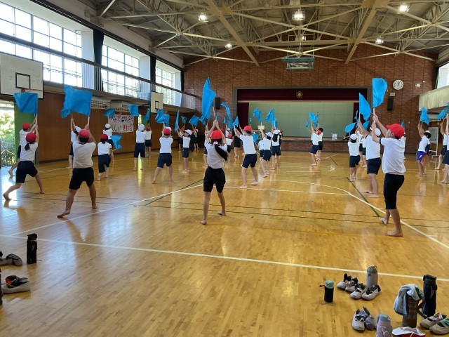 5年生は、ソーラン節の練習をクラスごとに行い、リーダーを中心に話し合いながら、よりよい演技になるよう自分たちで工夫していました。