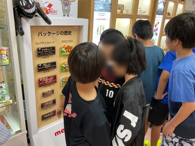 午後からは「明治なるほどファクトリー」へ。工場に入った瞬間、ふわっと広がるチョコレートの甘い香りに、子どもたちの顔がぱっと笑顔に。身近なお菓子がどのように作られているのかを学びました。
