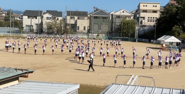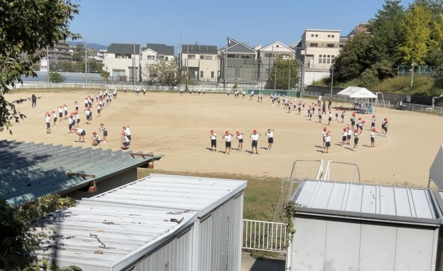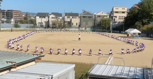 4年生は、ついに本番用の衣装を着ての練習!太鼓の音に合わせて、気合い十分。衣装を着ると気持ちもグッと引き締まるようです。いよいよ仕上げの段階に入ってきました!エイサーの後は、リレー「バトン for(4) you」にも取り組んでいました。