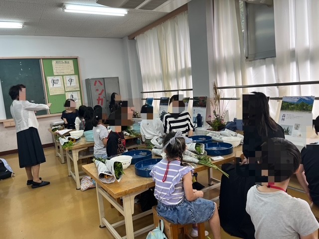 教室では、先生からいけばなの基礎や、あいさつやていねいな言葉、やさしい心といった、いけばなを通して大切にすべき基本を丁寧に教えていただきました。