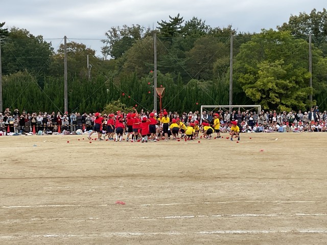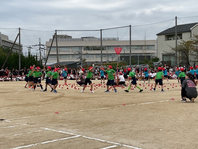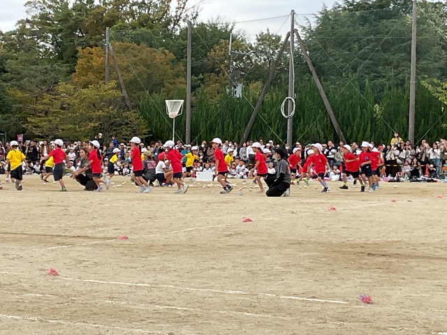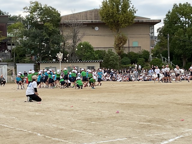 元気いっぱいの1年生たちは、音楽に合わせて楽しくダンス!音楽が変わり、笛の合図が鳴ると、すぐに気持ちを切り替えて玉入れに集中していました✨