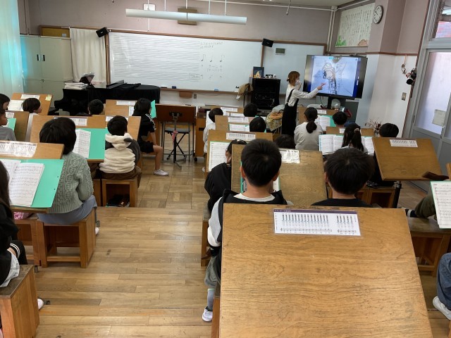 4年生は、合同音楽会に向けて発声練習や歌の練習に励んでいます。