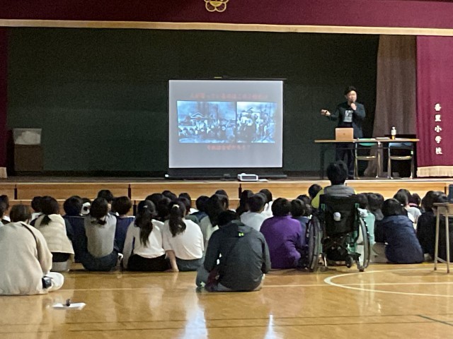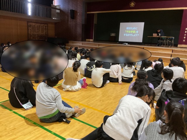 広島県出身で、枚方市内の小学校や他府県でも平和学習の講演をされている先生をお招きし、出前授業を行いました。