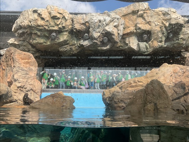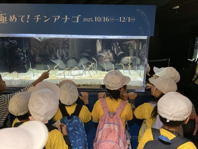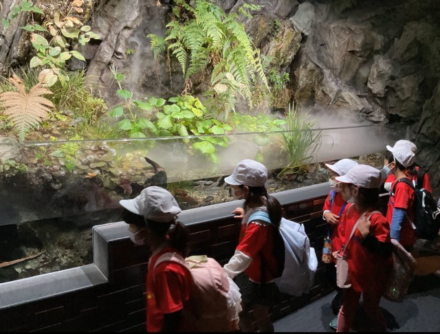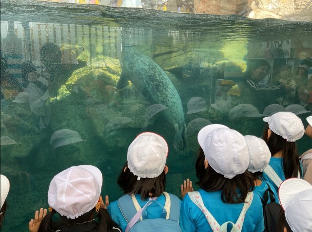 11月7日に、秋晴れの中、1年生が京都水族館へ校外学習に出かけました。館内は多くの来館者で賑わっていましたが、運動会で使用したおそろいのTシャツのおかげで、迷子になることなく活動することができました。子どもたちは海の生き物たちに興味津々で、楽しい時間を過ごしました。