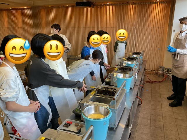 それぞれのクラスに分かれ、もみじ饅頭を作りました♪