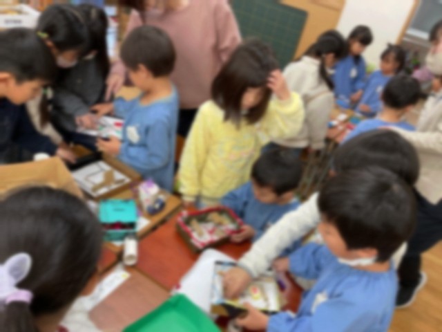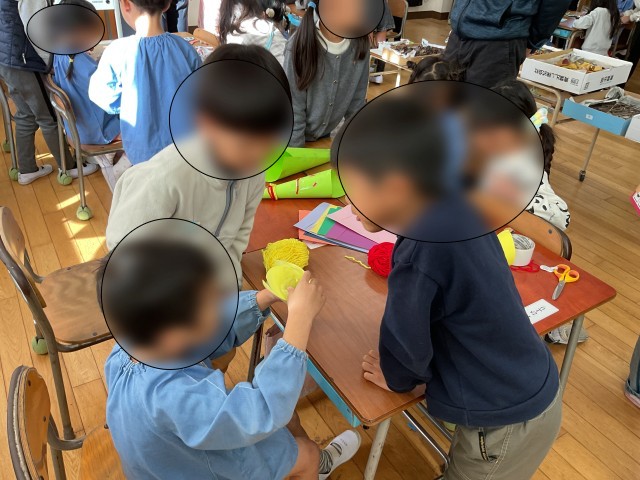 今日の活動に向けて、子どもたちは「どんなおもちゃを作ったら楽しんでもらえるかな?」と考えながら準備を進めてきました。
