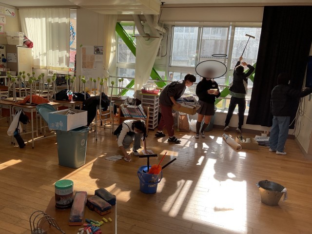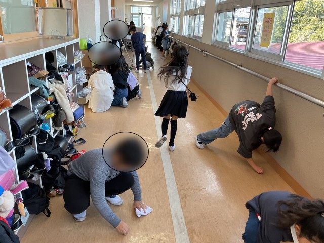 教室や廊下、特別教室など隅々までみんなで力を合わせて丁寧に掃除を進め、終わる頃には学校中がピカピカに!