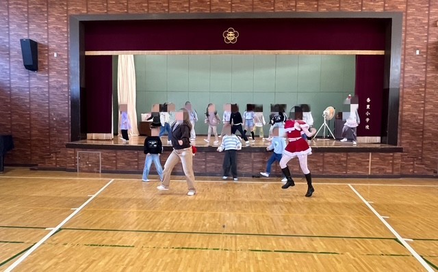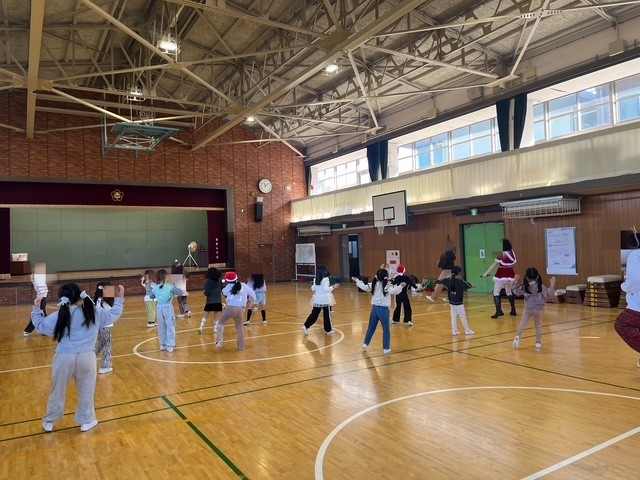 今回は「キッズダンス教室」でした。サンタクロースの衣装を着た元気いっぱいで素敵な先生方をお招きしました。