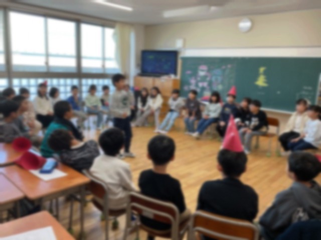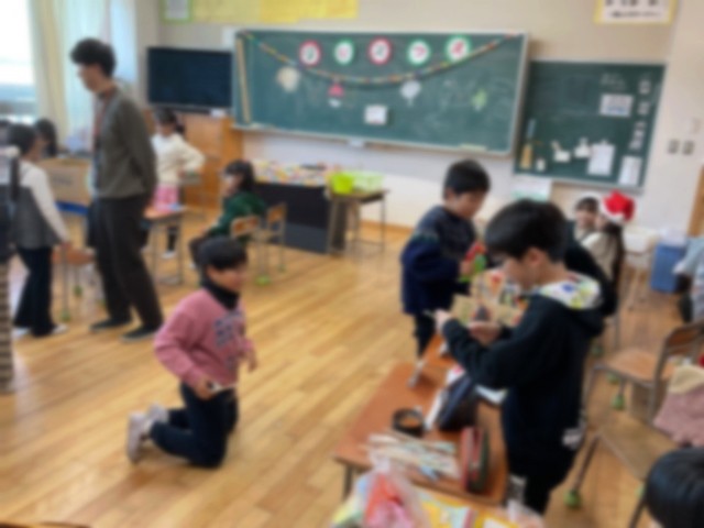 お楽しみ会の真っ最中で、フルーツバスケットでは「クリスマスが楽しみな人」というお題が出ると、子どもたちが一斉に席を移動して大盛り上がりでした♪
