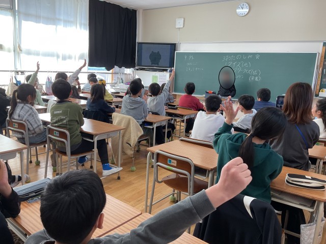 また、休み時間に大縄跳びに挑戦するクラスもあり、タイミングを合わせて次々と跳んでいました。
