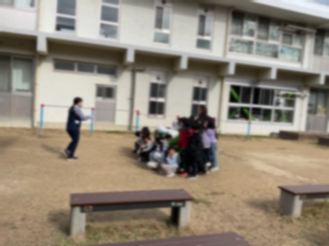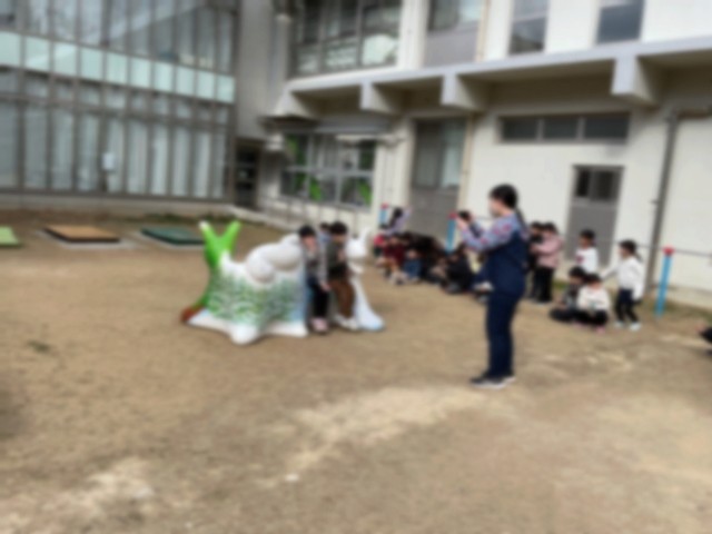 また、オオカミベンチへ出かけて、クラスみんなで写真撮影をしているクラスもありました。ベンチに座って楽しそうに並ぶ子どもたちの笑顔が、とても印象的でした。