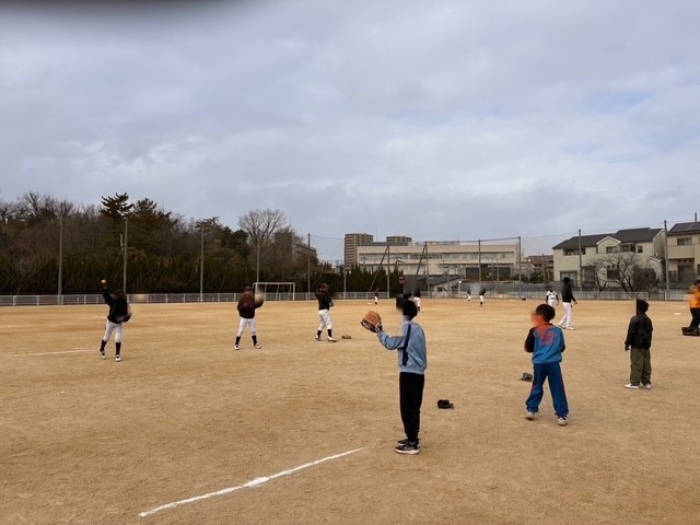 最後はチームで紅白戦をして、打ったり、走ったり、守ったりと寒さを忘れてたくさん動き回って、楽しい2時間を過ごしました。子どもたちはみな笑顔で「楽しかったー」と野球に興味深々でした。ご指導いただきました香里ヤングフェニックスのみなさん、どうもありがとうございました。