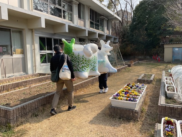 オオカミベンチが、次の場所へと旅立っていきました。たくさんの子どもたちが手を振りながら「バイバイ」と声をかけ、名残惜しそうに見送る姿が印象的でした。伊加賀小学校でも、きっと多くの人の心を癒してくれることでしょう。