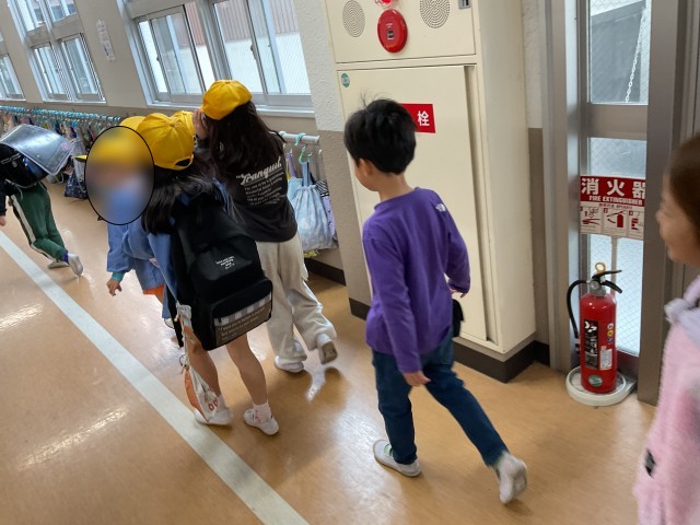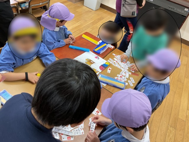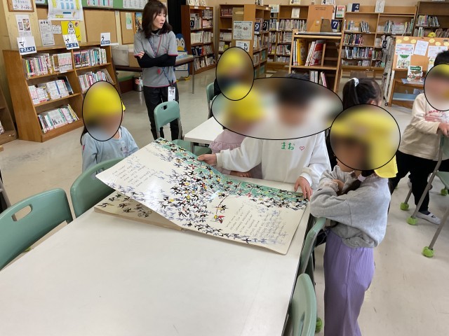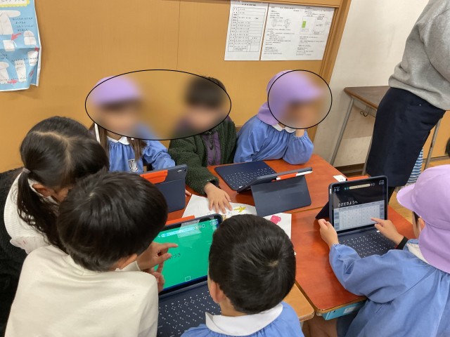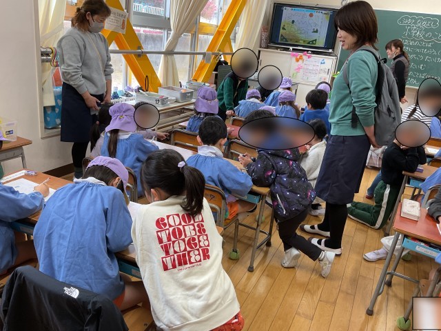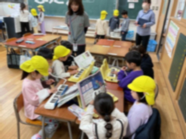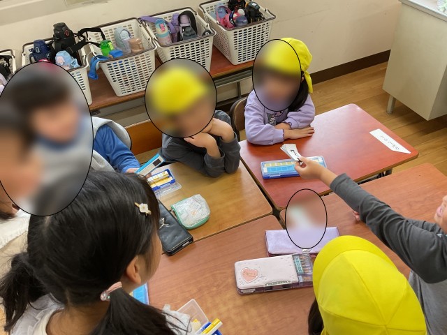「がっこうのことをしょうかいしよう」をテーマに、1年生が班に分かれ、小学校の生活を体験してもらえるようなコーナーを考えました。給食当番を体験したり、タブレットに触れたり、通学カバンを背負ってみたりと、学校での毎日をイメージできる工夫がたくさん見られました。1年生は、相手のことを思いながら、やさしく声をかけて案内する姿がとても素敵でした。