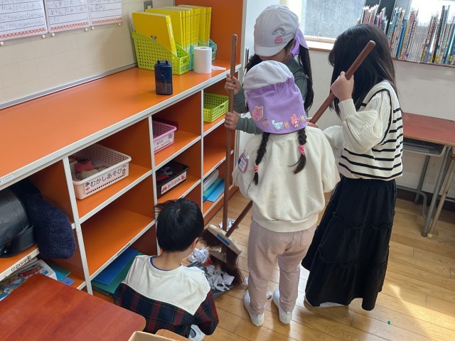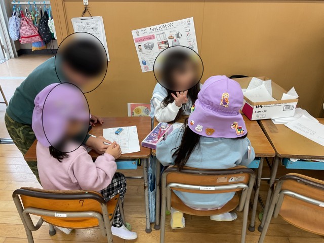 1年生は班に分かれ、4月からの小学校生活をイメージしてもらえるように、さまざまな体験コーナーを考えました。掃除の時間のお掃除を体験してもらったり、図書室に案内して一緒に絵本を読んだりと、学校ならではの活動を楽しんでもらいました。