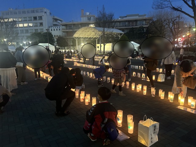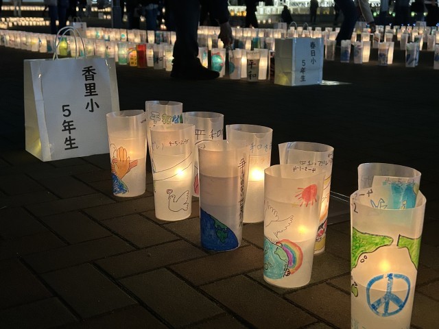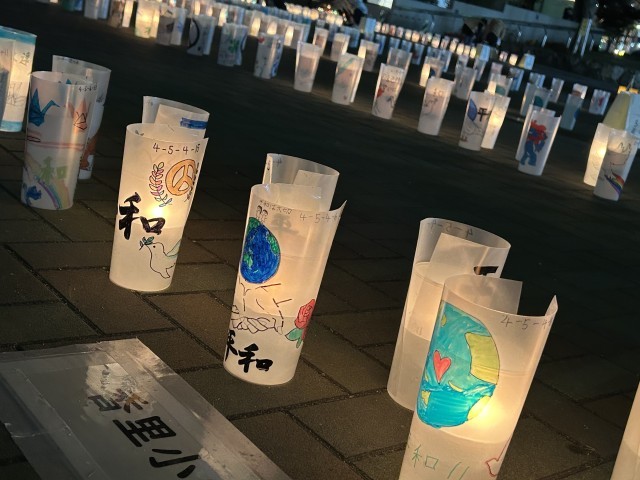 かつて起きた禁野火薬庫爆発事故を忘れず、平和の大切さについて考える日として定められています。会場では、5年生が描いた絵がキャンドルのやさしい灯りに照らされていました。