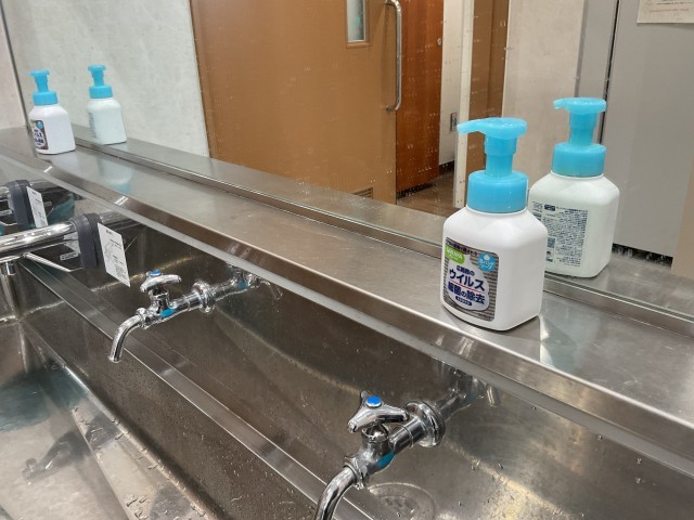 保健委員会では、毎日使う手洗場のハンドソープの容器を一つ一つていねいに洗ってくれました。
