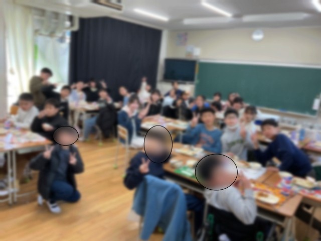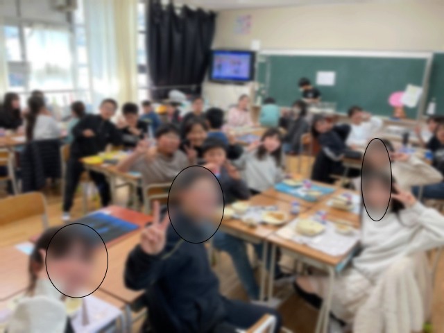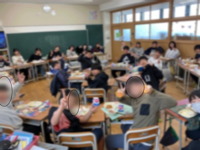6年生は小学校最後の給食を、みんなで笑顔で囲みながら味わいました。