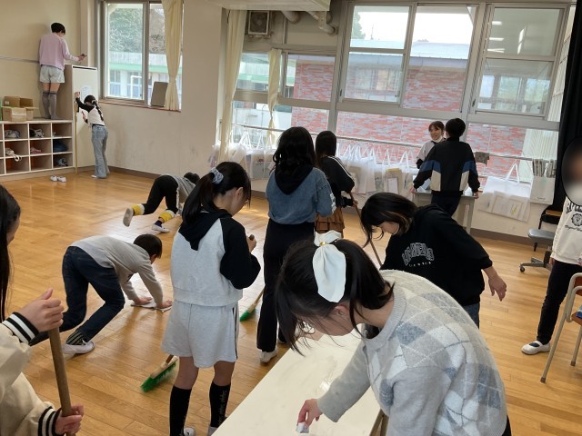 1年間お世話になった教室の大掃除が行われました。子どもたちは、机の中や床、棚の隅々まで丁寧に掃除をし、教室や廊下が見違えるほどきれいになりました。