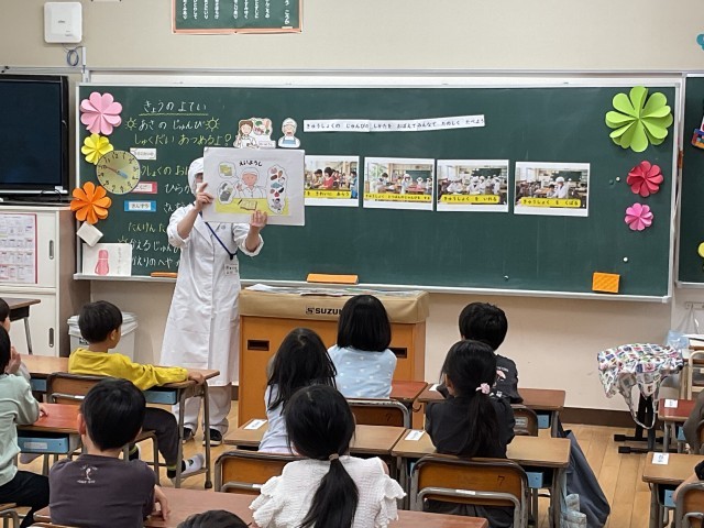 今日は、栄養士の先生が給食の準備についてお話してくださいました。