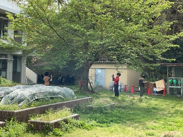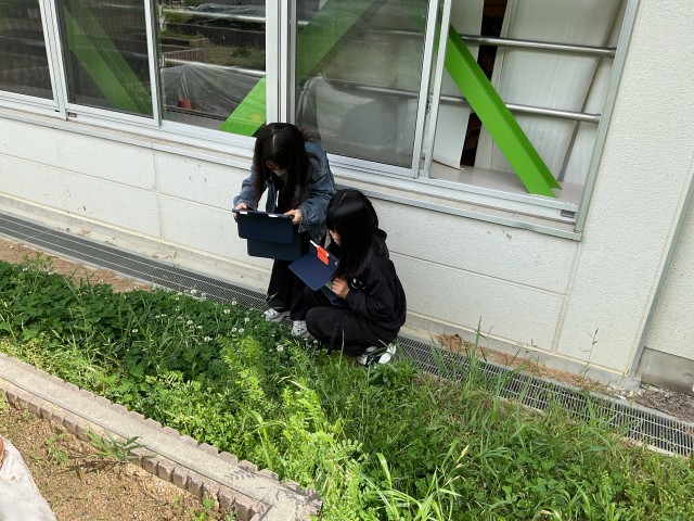 学校の中庭やうりこ山など、さまざまな場所で春の花を見つけてはタブレットで写真を撮っていました。