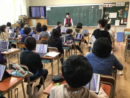 子ども達が考えた新しい数え方です。チョコは1あま、2あま。画鋲は1チク、2チク。ではテレビは? このクラスの方、是非、お子さんに聞いてみてください。最後は爆笑で、私達は教室を後にしました。
