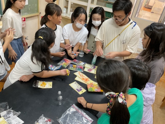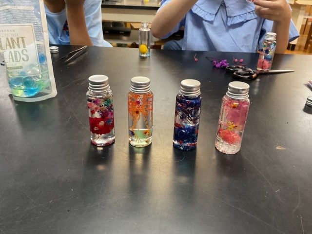ものづくりクラブでは今日はハーバリウム作りを行いました。