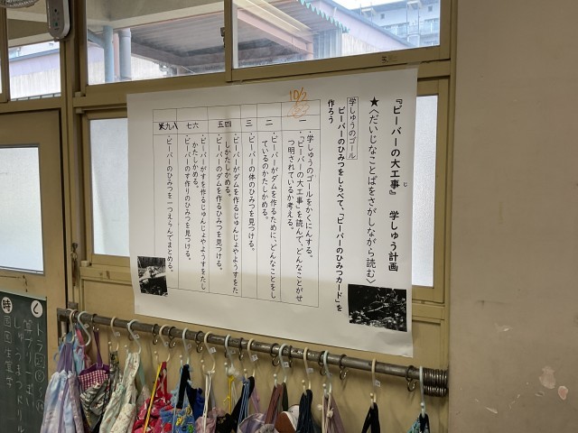 2年生の国語では「ビーバーの大工事」のお話を読んでいます。