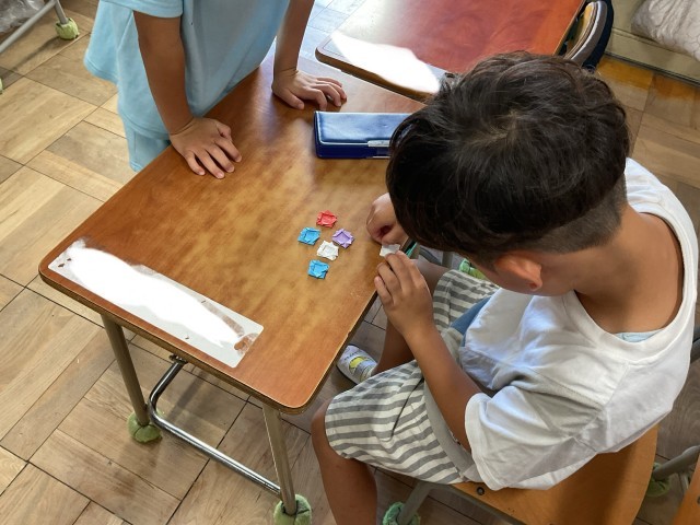 大縄をしたりコマを回したり、折り紙をしたりジェンガをしたり・・これは幼稚園と小学校をつなぐ架け橋プログラムの一環です。