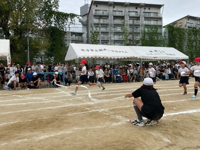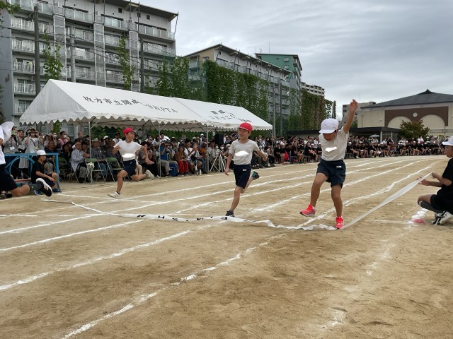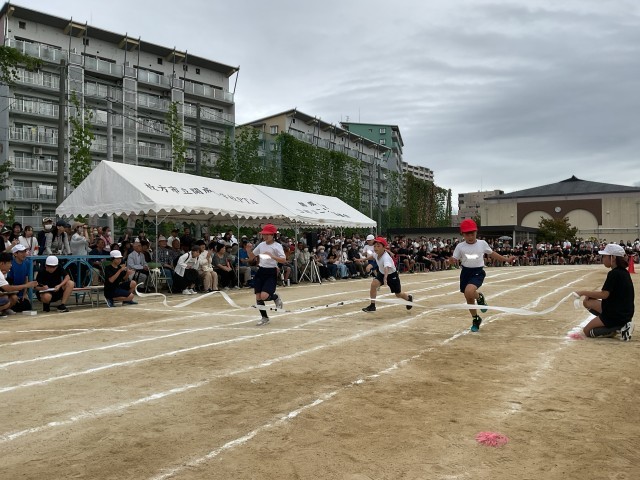 初めてのカーブ走。長い距離を全力で駆け抜けます。最後まで諦めずに頑張る姿が学校良かったですね!