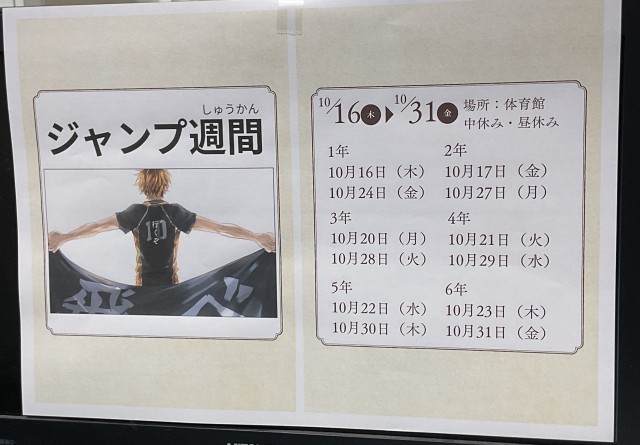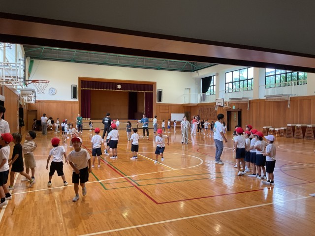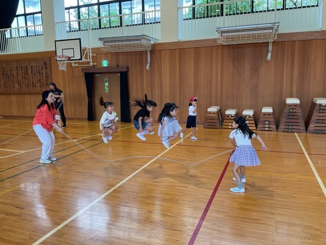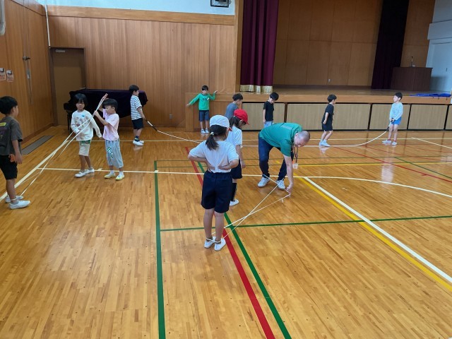 体育館の中に垂直とび、ゴムとび、立ち幅とび、大縄とび・・などなどジャンプ力を強化するための工夫が散りばめられています。学年ごとに決められた日に遊びにいって、自由に楽しみながら跳躍力を鍛えます。