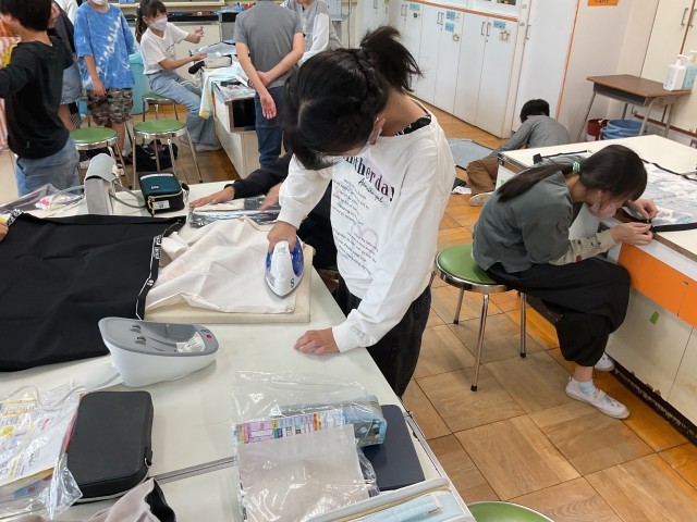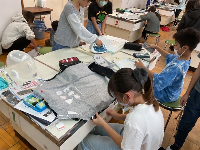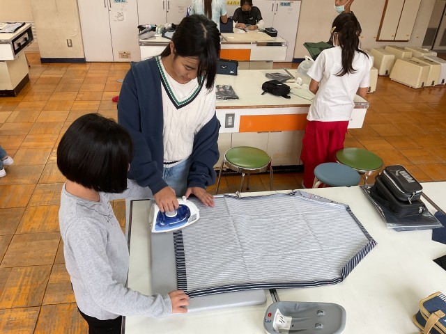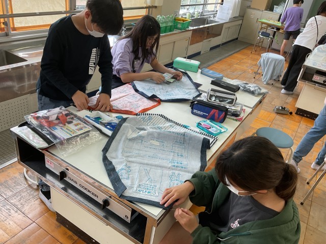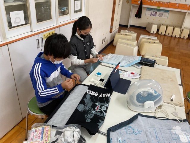 5年生の家庭科ではエプロン作りが始まりました。