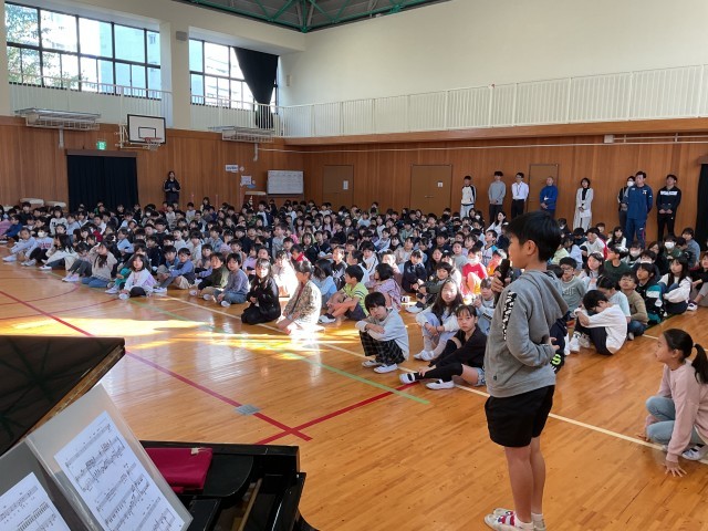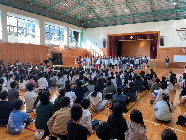 6年生の真剣な眼差しが1年生から5年生に伝わったのか、見ているみんなも真剣な眼差しで見ていました。