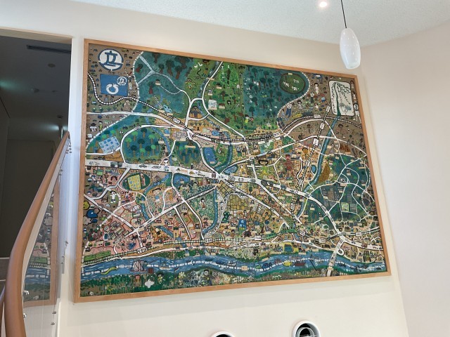 入ってすぐの螺旋階段の上にある絵は、昔の開成小学校の子どもたちが作ったものらしいですよ!初めて知りましたね!