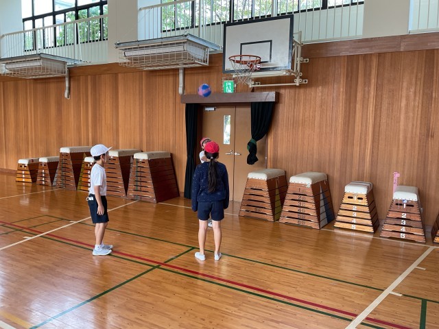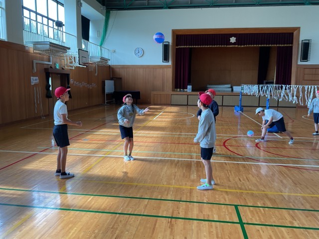 4年生の体育ではネット型競技としてバレーボールに挑戦しています。