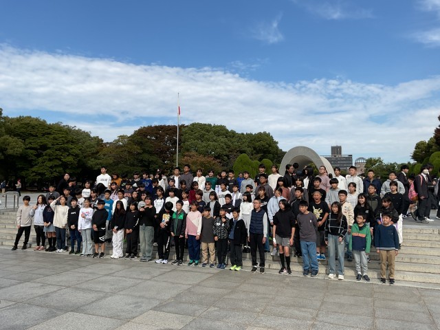 原爆死没者慰霊碑の前でも学年写真を撮りました。