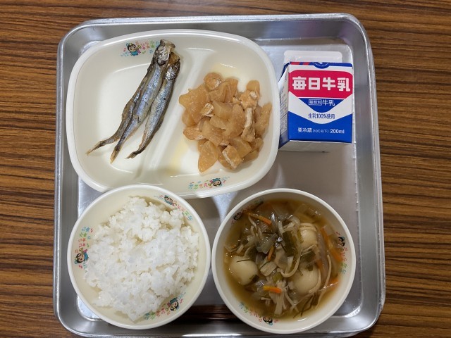 今日のメニューはじゃがいももちのエコおつゆでした。