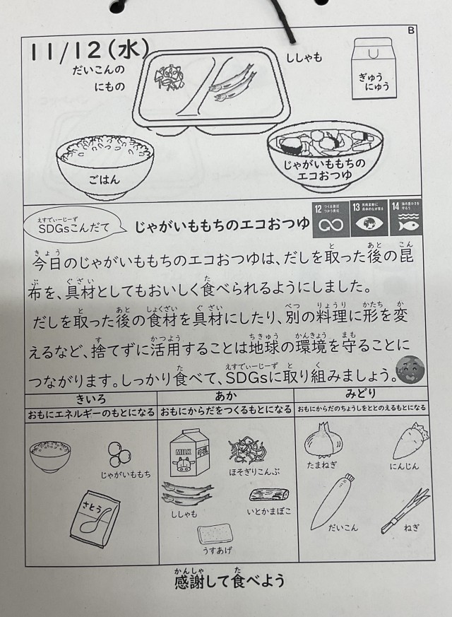 みんなにできることは、なるべく残さないように色々なものをたくさん食べることですね。ぜひみんなでSDGsに取り組んでいきましょう!